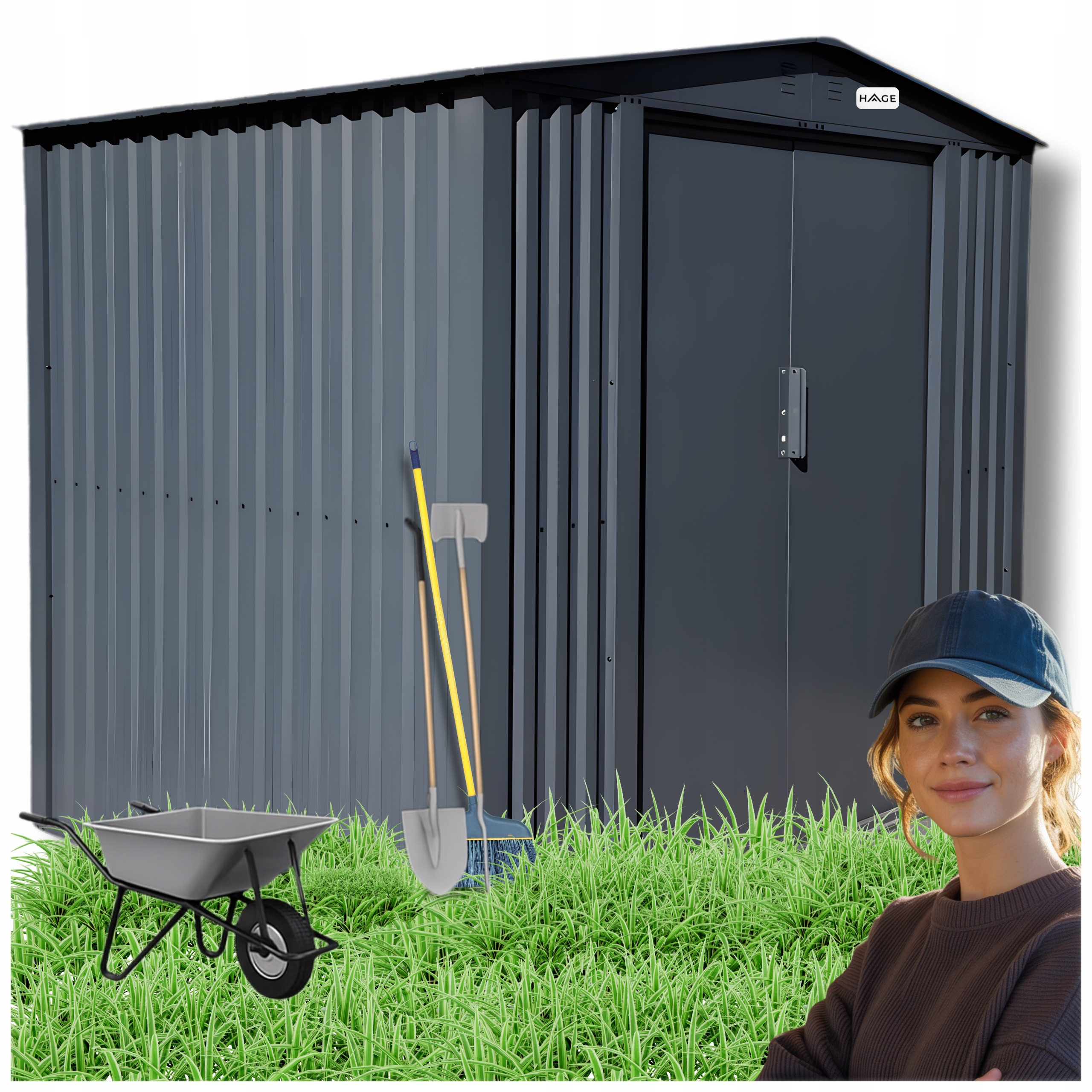 Przestronny domek na narzędzia, idealny do uporządkowania przestrzeni ogrodowej. Wykonany ze stali malowanej proszkowo o wzmocnionej konstrukcji z grubszą ramą i panelami, jest odporny na rdzę, wypaczanie i pęcznienie. Dwuspadowy dach oraz solidne belki zapewniają stabilność i wytrzymałość przez wiele lat użytkowania.