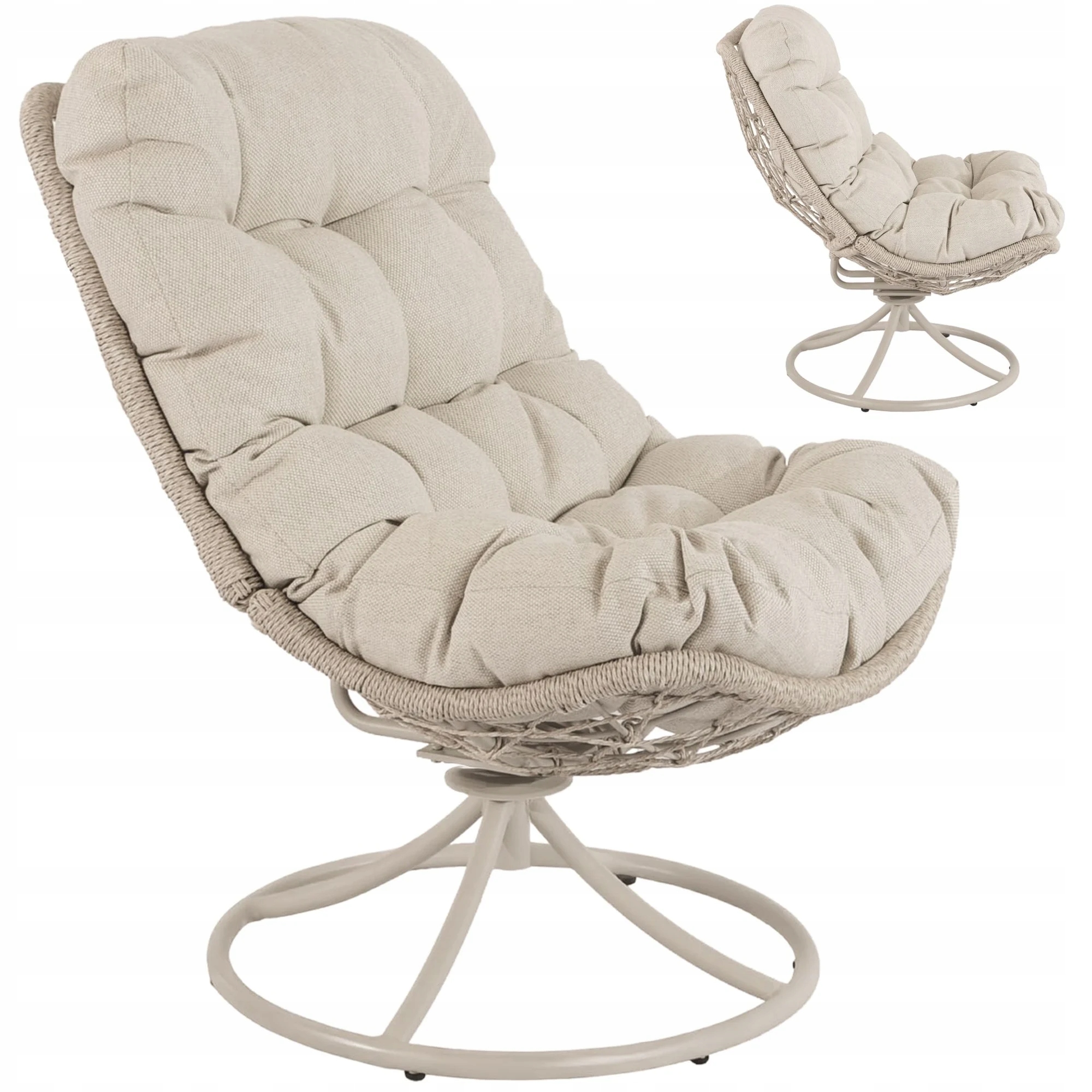 Fotel Ogrodowy Obrotowy Wolnostojący Krzesło Ogrodowe Balkonowe Kolor beżowy