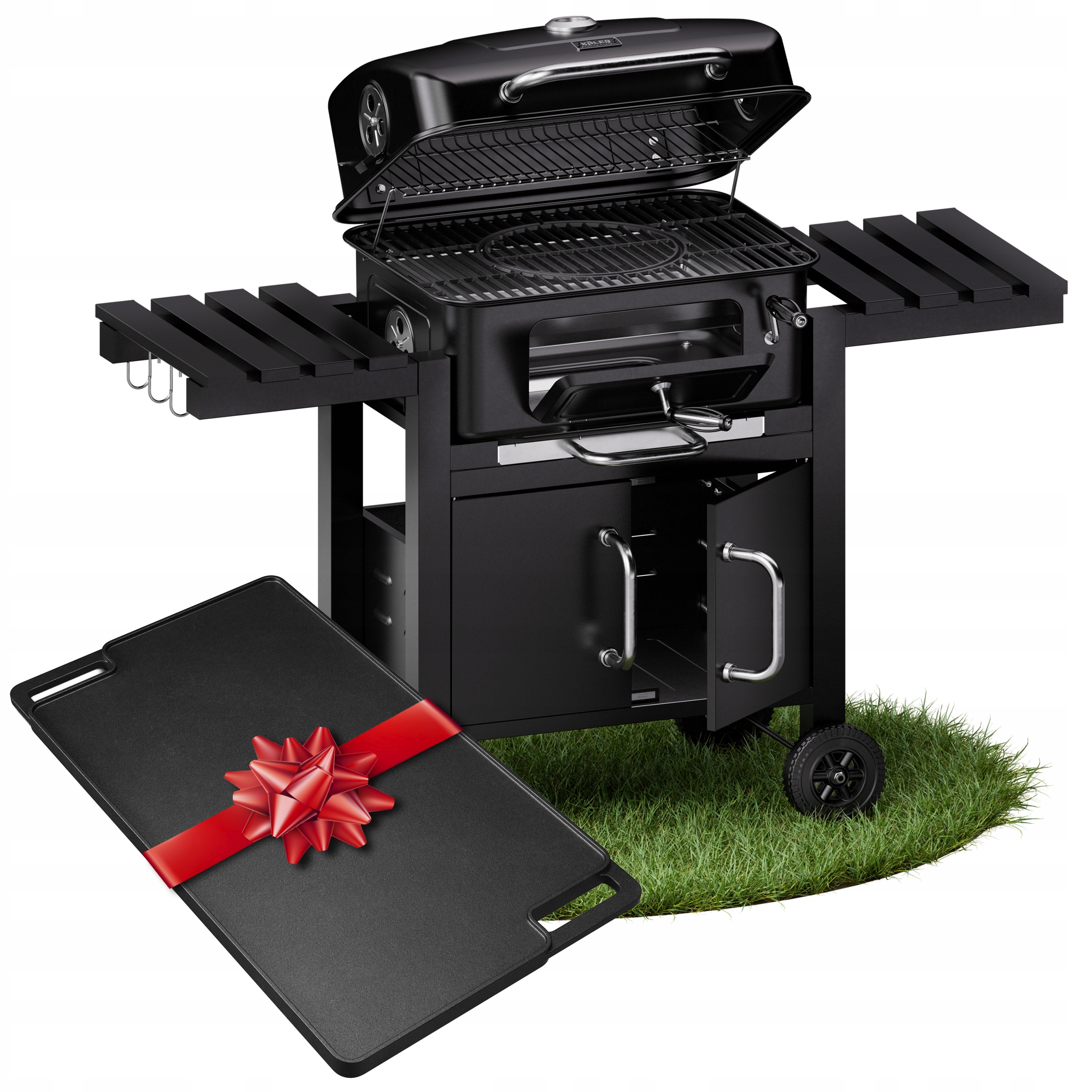 Pod komorą grillowania znajduje się obszerna, zamykana szafka, która pozwala wygodnie przechowywać zapas węgla, akcesoria grillowe, tacki czy rękawice ochronne.